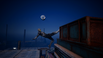 When a factory explodes, releasing deadly toxic gases, the player must escape through crumbling buildings and cracked rooftops to the tallest building in the city and wait for rescue.